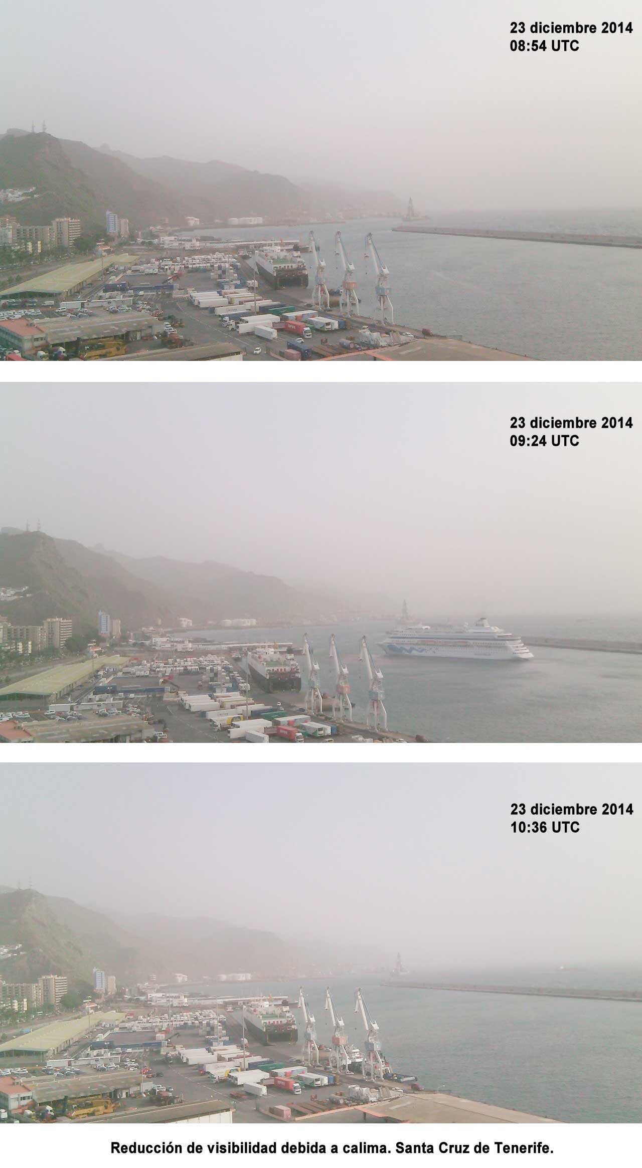 Por último, una muestra de cómo puede cambiar la visibilidad rápidamente debido a la presencia de polvo en suspensión. Las fotos fueron hechas hoy, día 23 de diciembre de 2014, en Santa Cruz de Tenerife, mirando hacia Anaga.