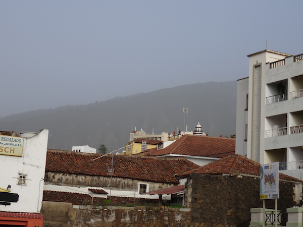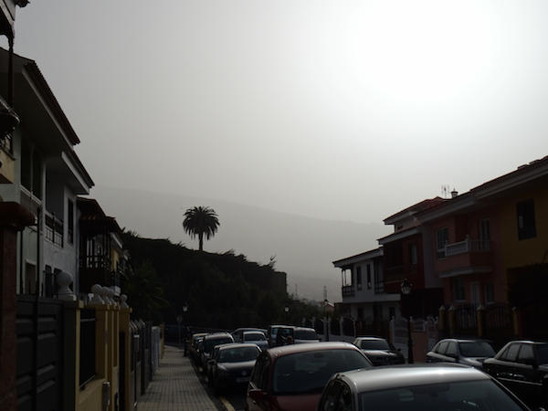 Compara esta foto con la segunda. Está hecha desde el mismo punto, aunque con diferente aumento: ¿dónde está el Teide nevado? Si te fijas muy bien puedes ver dónde está, pero cuesta mucho distinguirlo por la reducción de visibilidad debida al polvo en suspensión.