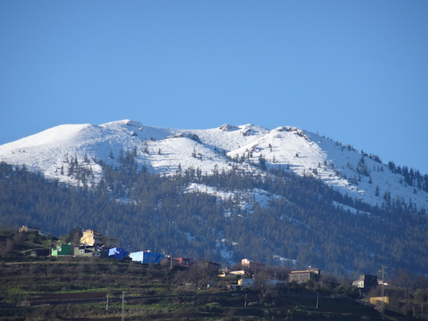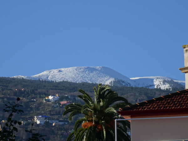Había nevado días antes, pero fue el día 22 de febrero cuando amaneció el cielo totalmente despejado y las cumbres de Tenerife se dejaron ver vestidas de blanco. Estas fotografías son de ese día, a mi llegada a La Orotava para iniciar mi jornada en la Universidad Europea de Canarias.